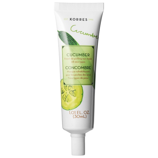 Korres Mask with Cucumber: ενυδατώνει, αναζωογονεί, βελτιώνει την κυκλοφορία, μειώνει το πρήξιμο. Εφαρμόζεις γύρω από την περιοχή των ματιών και αφήνεις για 15΄, μετά καθαρίζεις την περιοχή.
